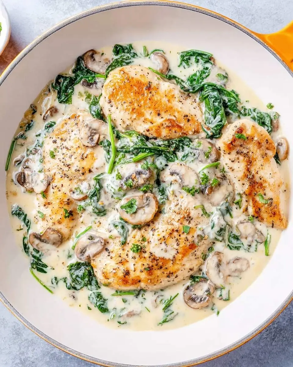Creating this wonderful Spinach Chicken Skillet is simpler than you might imagine. First, sear the seasoned chicken breasts until golden. Then, build that luscious creamy spinach sauce right in the same pan, allowing all those beautiful flavors to meld together. Finally, return the chicken to simmer in the sauce until perfectly cooked, much like the comforting simplicity of our Creamy Garlic Chicken.